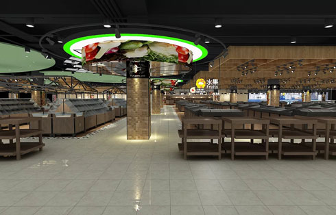 上海公裝公司案例:本案生鮮超市后現(xiàn)代工業(yè)風(fēng),賣(mài)場(chǎng)個(gè)性化設(shè)計(jì),點(diǎn)睛綠可讓整個(gè)空間鮮活起來(lái)。